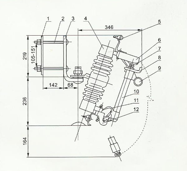 熔絲管兩端的動觸頭依靠熔絲(熔體)系緊,將上動觸頭推入"鴨嘴"凸出部分后,磷銅片等制成的上靜觸頭頂著上動觸頭,故而熔絲管牢固地卡在"鴨嘴"里。當短路電流通過熔絲熔斷時,產生電弧,熔絲管內襯的鋼紙管在電弧作用下產生大量的氣體因熔絲管上端被封死,氣體向下端噴出,吹滅電弧。由于熔絲熔斷,熔絲管的上下動觸頭失去熔絲的系緊力,在熔絲管自身重力和上、下靜觸頭彈簧片的作用下,熔絲管迅速跌落,使電路斷開,切除故障段線路或者故障設備。