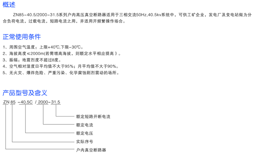 ZN85-40.5/2000-31.5戶內高壓真空斷路器
